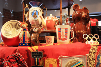 Олимпийская сувенирная продукция для Московской Олимпиады: приемник «ВЭФ» из Риги, блюдо из металла Индия, блюдо в цветах Хохлома, самоварчик Сибирь, чайный сервиз Ленинградский фарфоровый завод, Мишка керамический Дулево. И сотни других адресов. Весь мир работал на Москву в 1980−м!