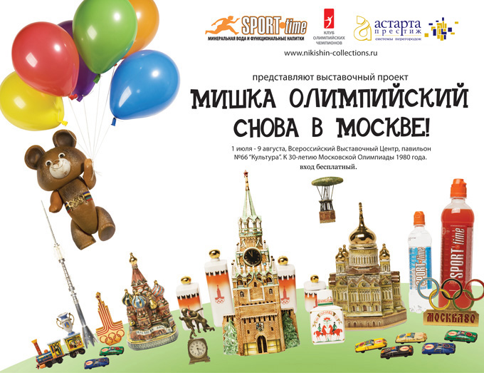 Канал «Спорт» вопрос устроителю выставки Александру Никишину: «Для чего вы собираете мишек? В детстве не наигрались?». Ответ: «Мишка Олимпийский наш русский антидепрессант! Да вы на него гляньте сразу и про кризис забудете и про все плохое в нашей жизни! Да он лучше любого психоаналитика…».
